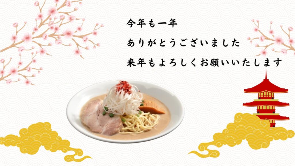 冬季休暇のお知らせ 2025年12月3日 最終更新日時 : 2025年12月3日 gokkei.co.jp 今年も残りわずかとなりました。 皆様には本年も格別のご厚情を賜り心より感謝申し上げます。 『麺屋 極鶏®︎一乗寺本店』 『麺屋 極鶏®︎円町店』 共に下記の日程を年末年始の休業期間とさせていただきます。 大変ご迷惑をおかけ致しますが何卒よろしくお願い申し上げます。